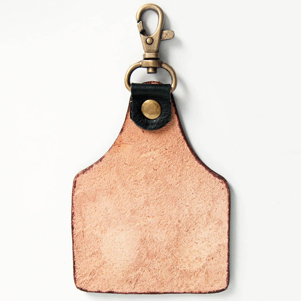 Tooled Leather Keychain Sunflower & Western Scroll with Turquoise Border