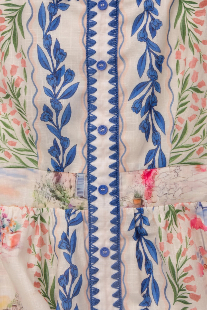 𝐃𝐞𝐬𝐜𝐫𝐢𝐩𝐭𝐢𝐨𝐧 • Style: Euro scenery print with floral border print mini dress • Texture: soft • Color: Ivory Multi • Pattern Type: Euro scenery • Details: euro printed mini dress, straps, border print detail, elastic on the back, square neck, scoop back, fit-and-flare silhouette crafted of stretch • Neckline: squared • Sleeve Length: sleeveless • Fit Type: loose fit