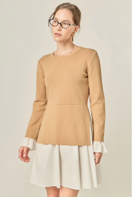 - Long sleeves with flared cotton hem
