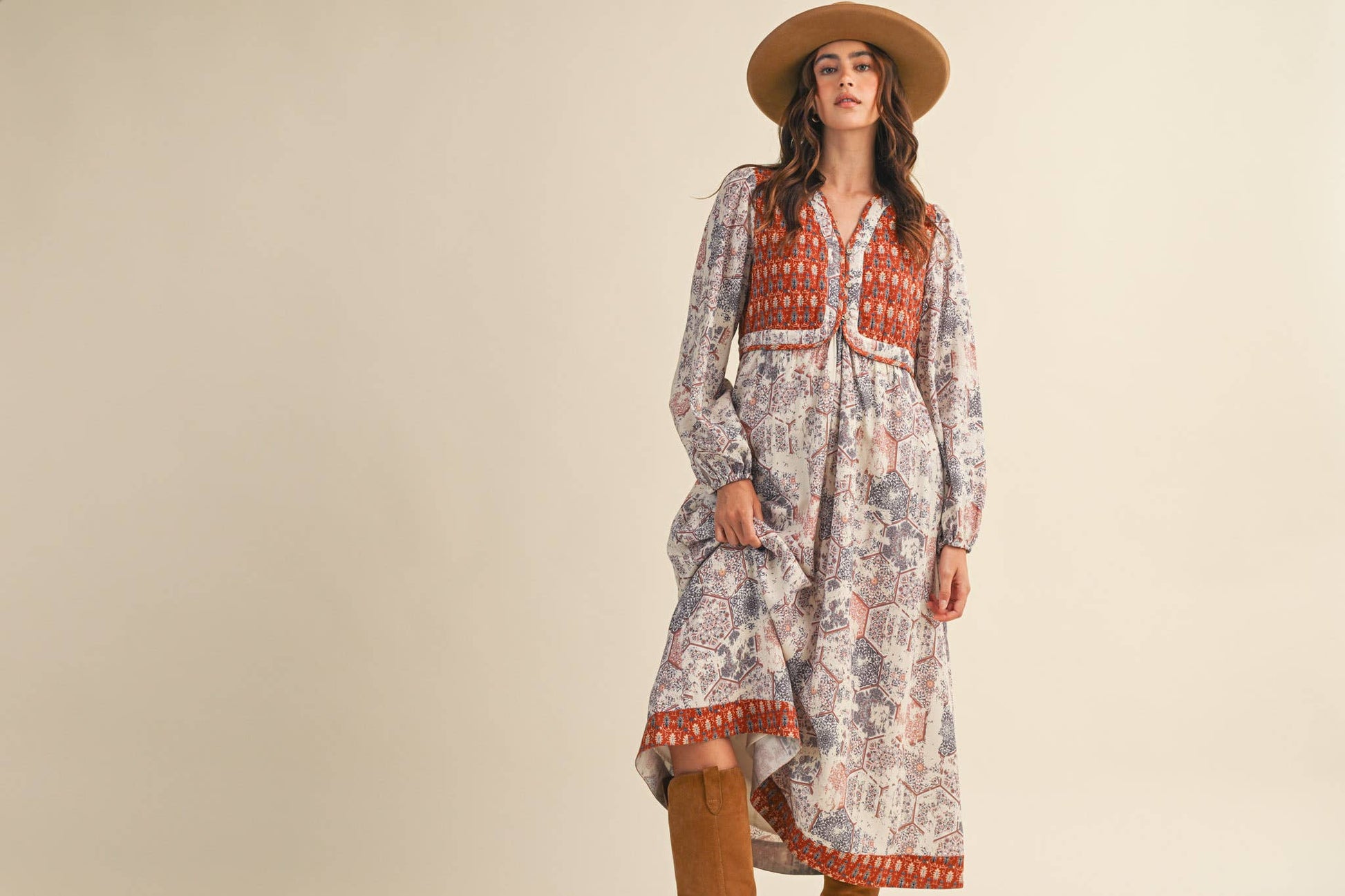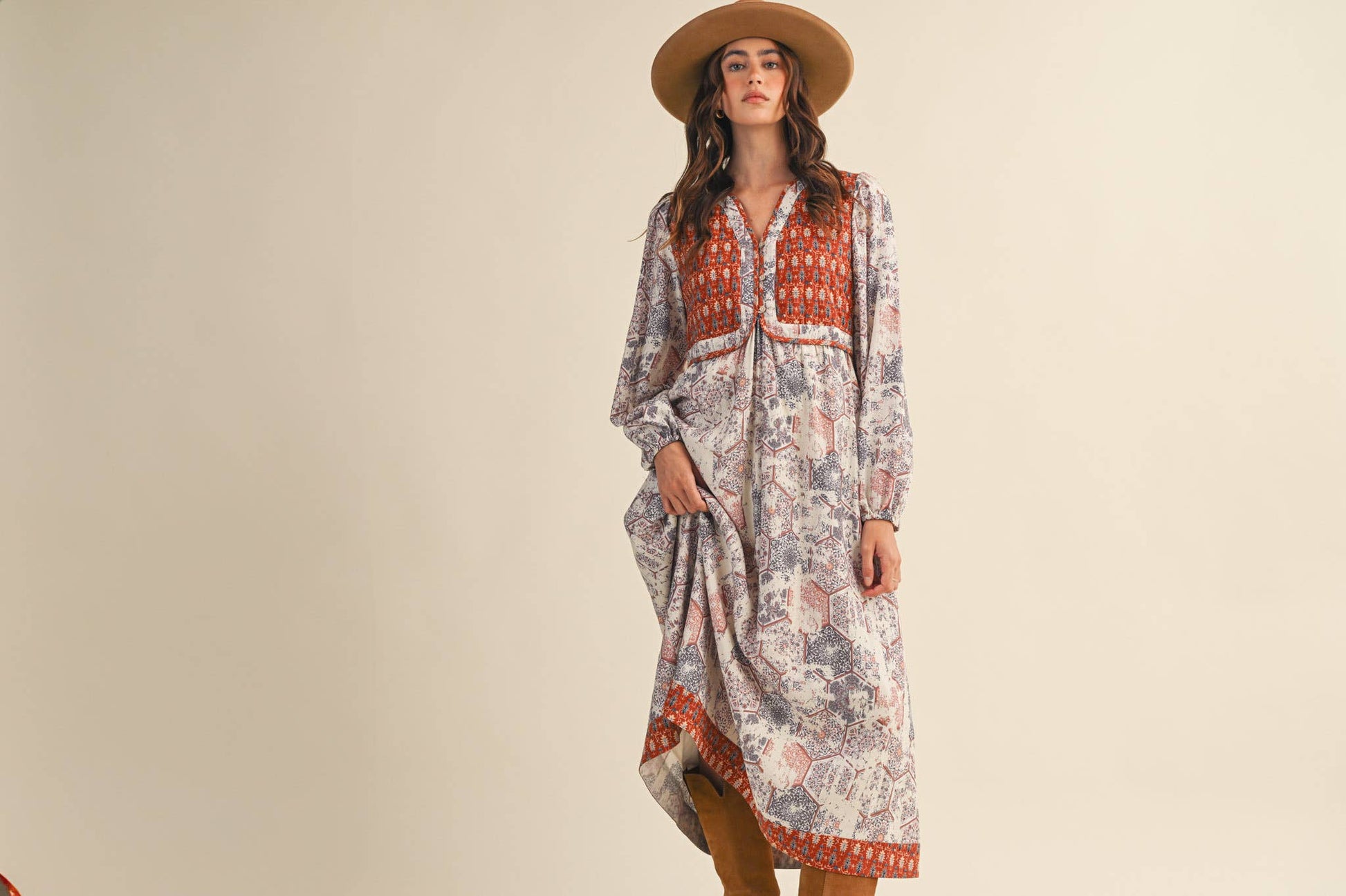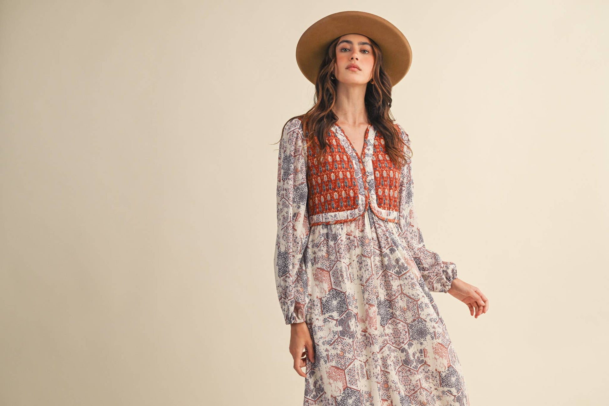 + Distressed floral mosaic print