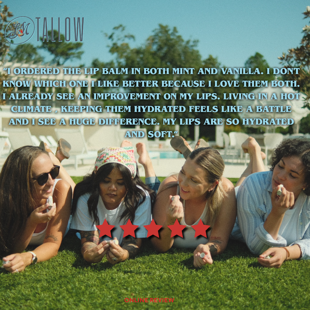 We discovered tallow—the nutrient-rich fat our great-grandparents used for generations—and were amazed by its effectiveness. Grass-fed beef tallow is remarkably similar to our own skin's natural oils, making it one of the most biocompatible moisturizers on earth. What began as homemade lip balm for our family has grown into a small business dedicated to bringing you sk