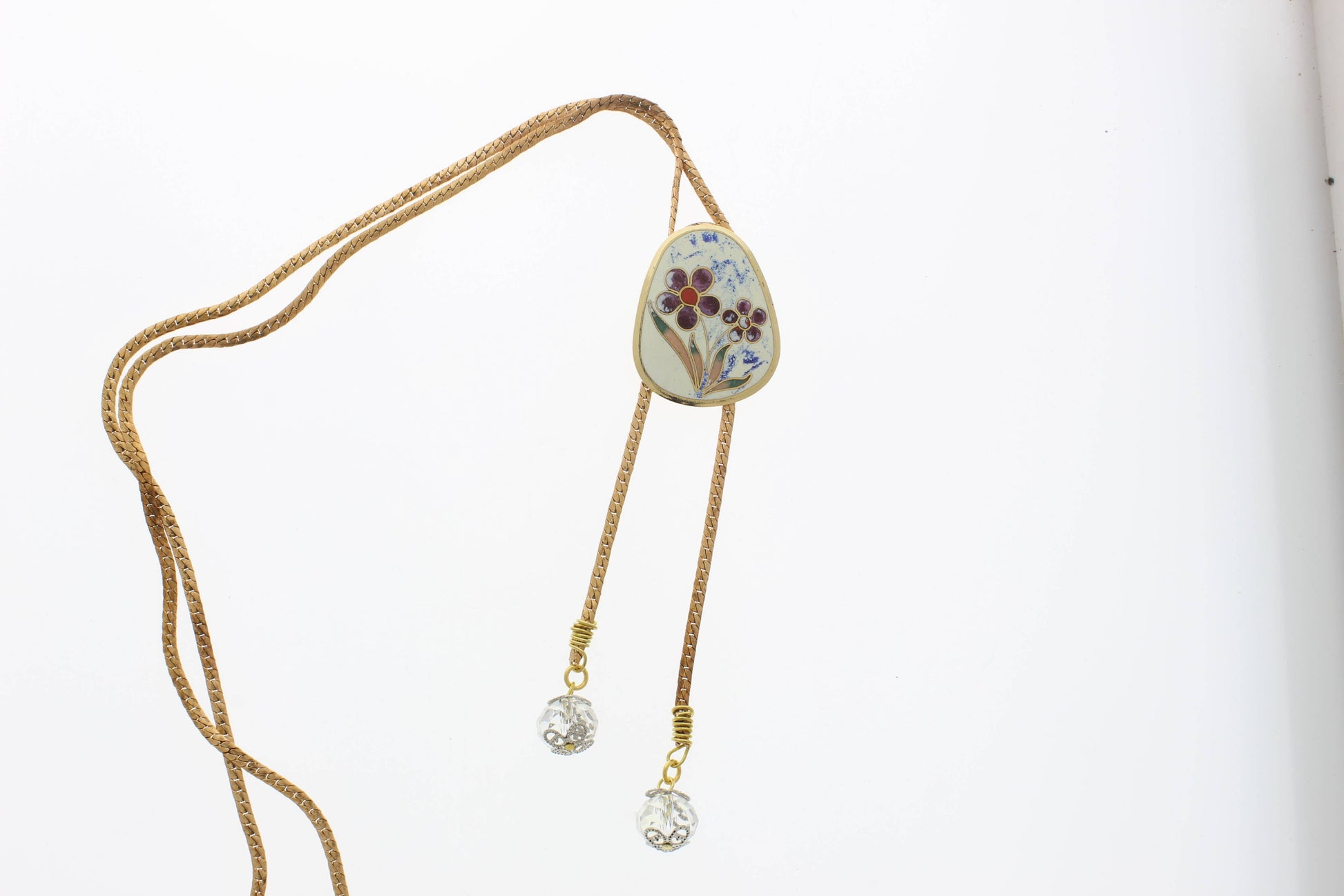 Vintage Enamel Flower Bolo Tie, 36" gold chain, sold by each